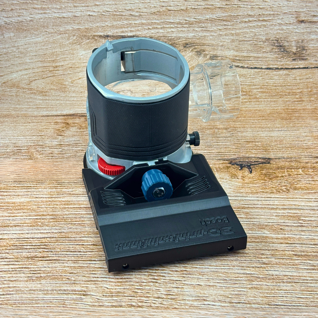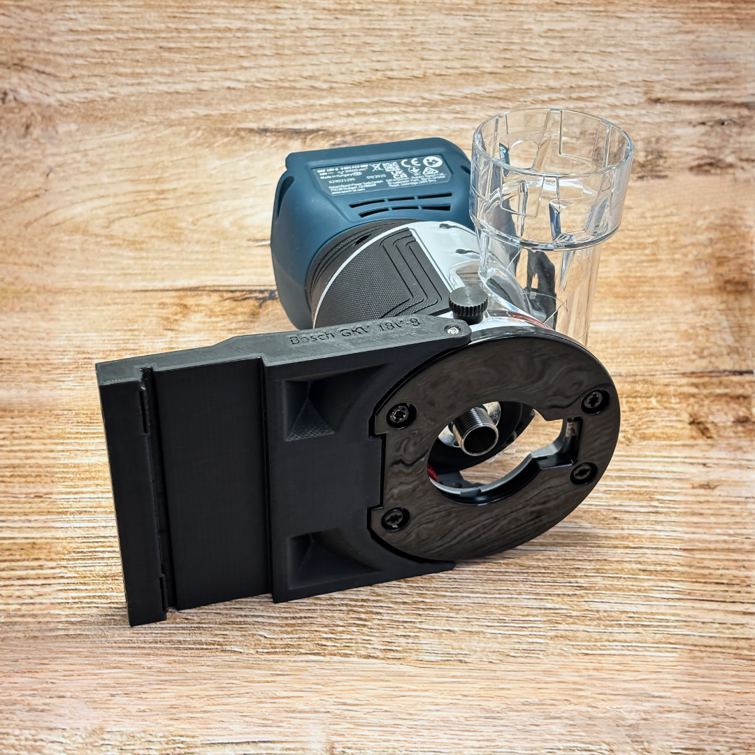 Dieser Führungsschienenadapter wurde speziell für die beliebten Einhandfräsen von Bosch und baugleiche Klone entwickelt. Der Anschluss ist dem Original nachempfunden und ermöglicht eine Montage und Demontage in Sekundenschnelle – ganz ohne Wechsel der Grundplatte.